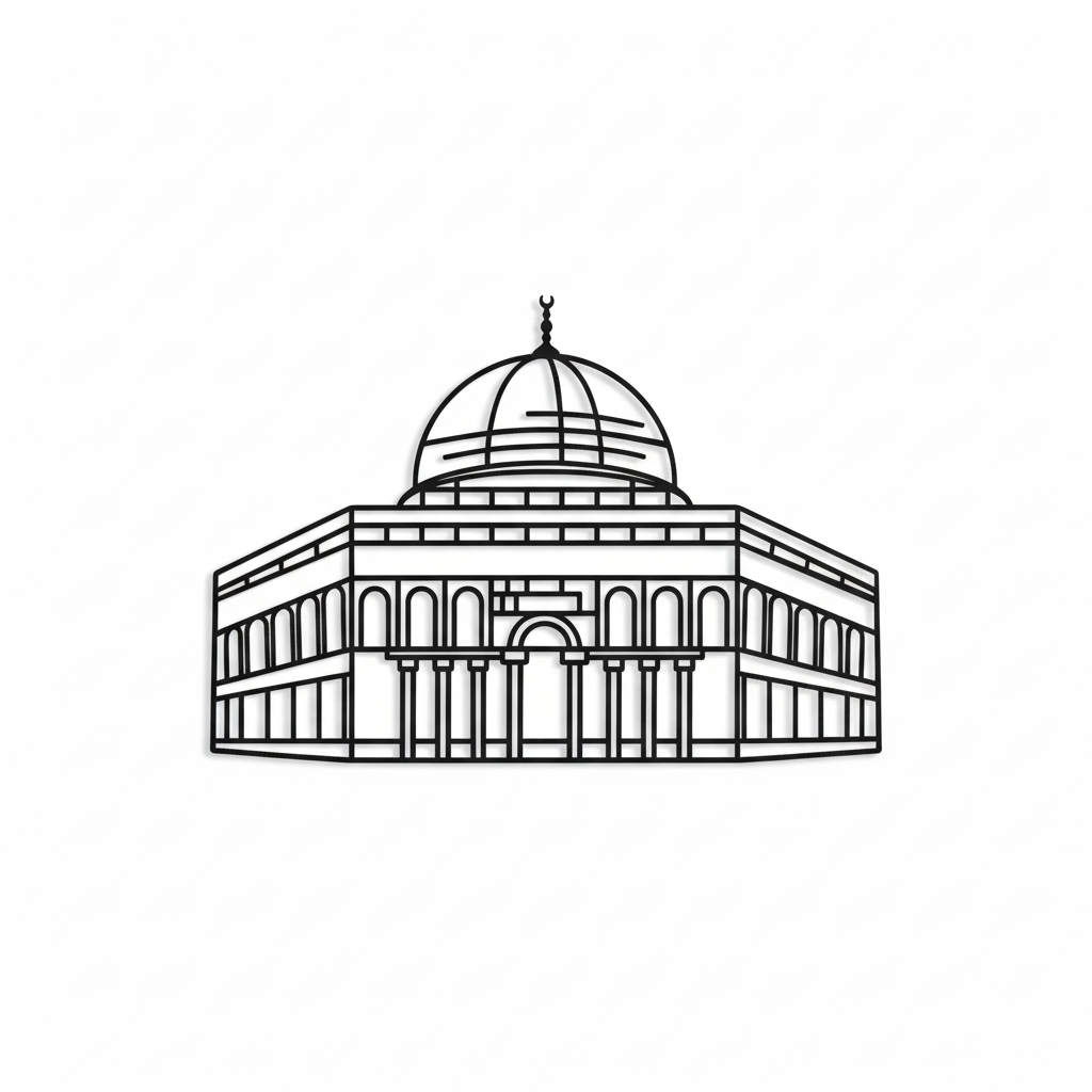 Our Dome of the Rock Metal Wall Art is a breathtaking tribute to one of Islam’s holiest sites, Al-Quds (Jerusalem). Designed with precision in elegant black steel, this piece captures the majestic dome and arches of Qubbat al-Sakhrah, the landmark where the Prophet Muhammad ﷺ ascended during Al-Isra’ wal-Mi’raj. Mounted to stand 2 cm (0.8 in) away from the wall, it creates a striking 3D effect that adds depth, presence, and elegance to any space.